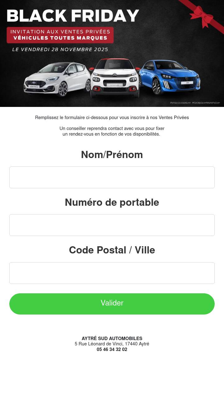 Remplissez le formulaire ci-dessous pour vous inscrire à nos Ventes Privées