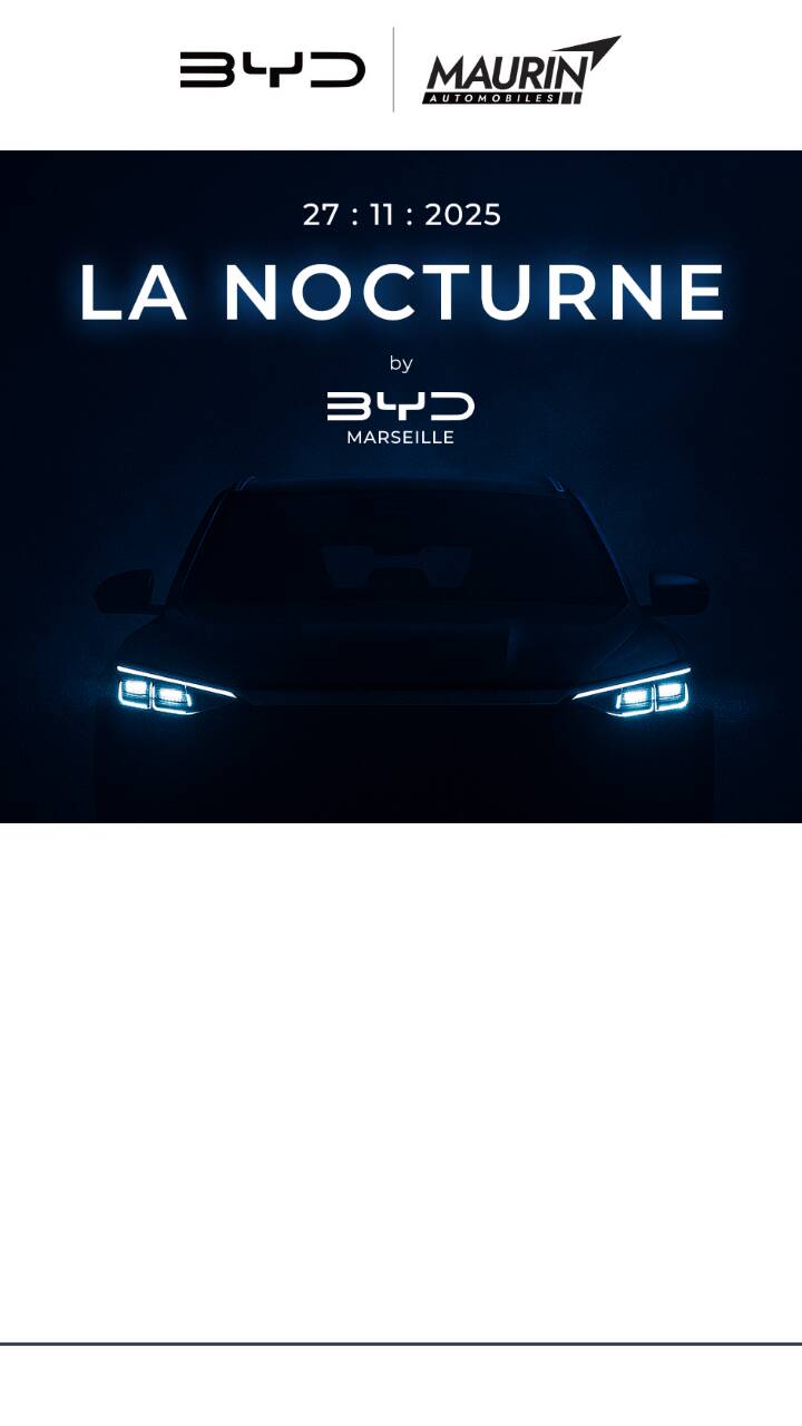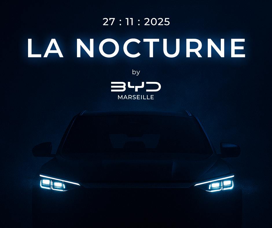Le nouvel SUV SuperHybride, prêt pour la super looooooongue distance ! À cette occasion, nous vous invitons à venir le découvrir lors d’une ouverture exceptionnelle en soirée : LA Nocturne by BYD Marseille. JEUDI 27 NOVEMBRE - 19H / 21H