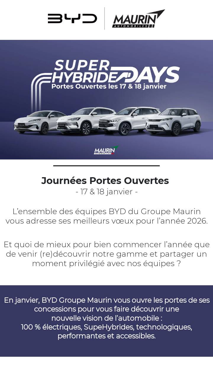 En janvier, BYD Groupe Maurin vous ouvre les portes de ses concessions pour vous faire découvrir une