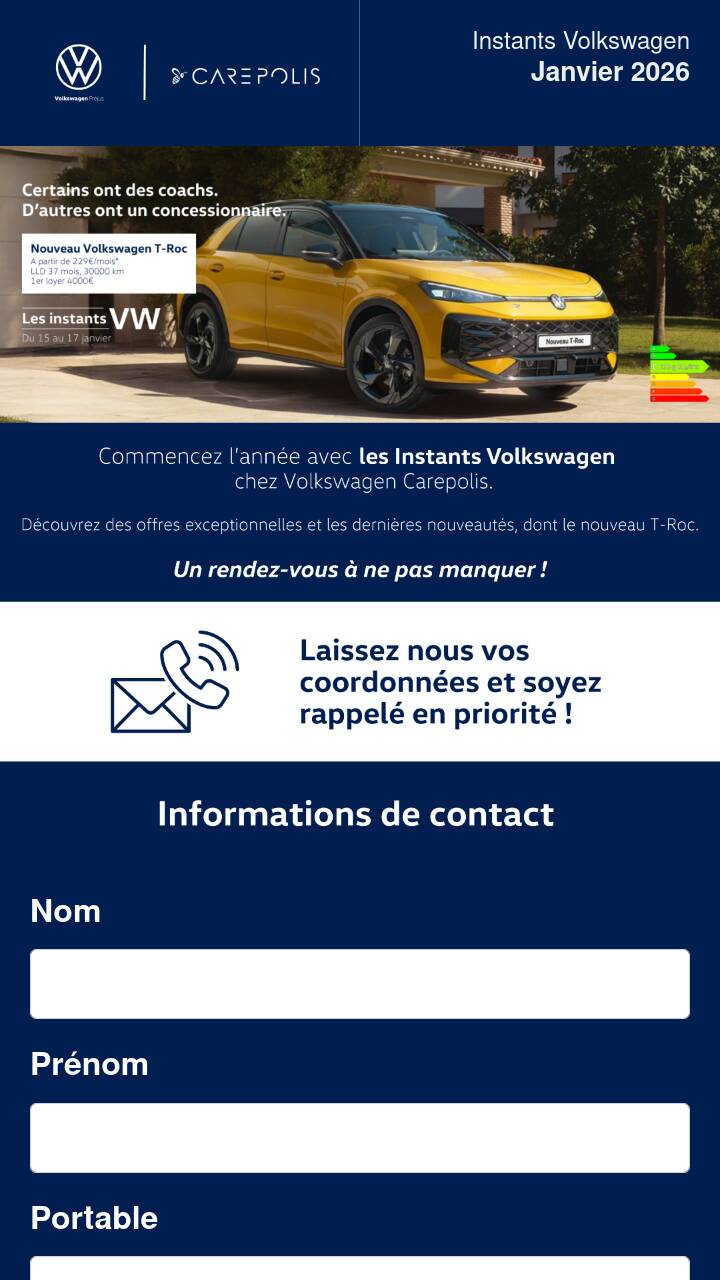 En validant ce formulaire, j'accepte que mes données soient traitées par Volkswagen Fréjus afin d'être recontacté(e). Conformément au RGPD, vous pouvez exercer vos droits d'accès, de rectification ou de suppression en écrivant à