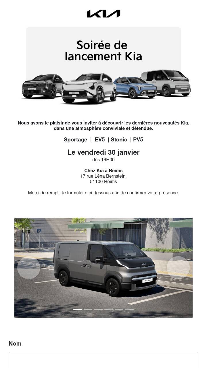 Nous avons le plaisir de vous inviter à découvrir les dernières nouveautés Kia, dans une atmosphère conviviale et détendue.