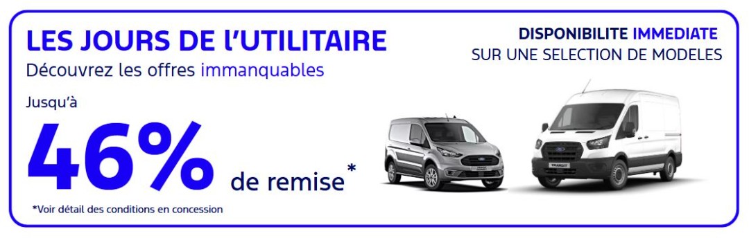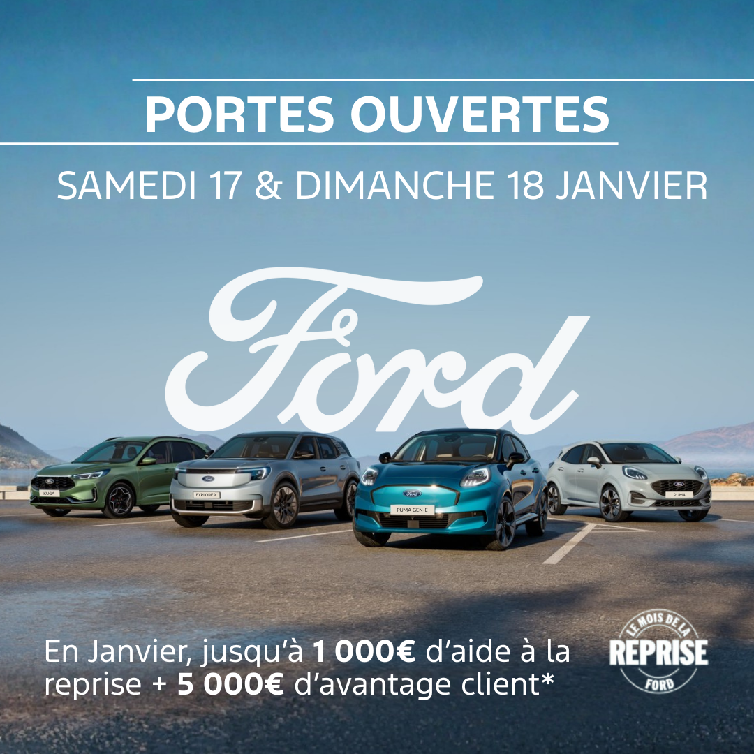 *Remise recommandée sur prix maximum de 5 000€, valable pour Puma, Kuga et Explorer et de 2 500€ pour Puma Gen-E. ** Sous condition de reprise d’un véhicule roulant particulier. Offre à particuliers, non cumulable, selon stocks disponibles, du 1er au 31 janvier 2026. Détails sur ford.fr