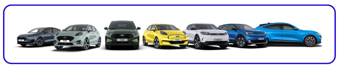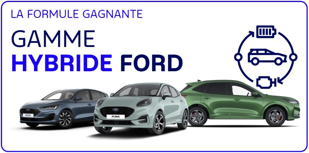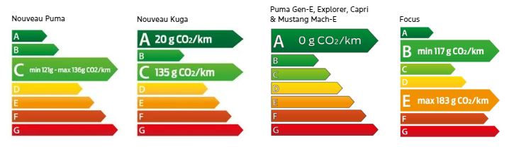 Modèles présentés : mêmes conditions ; Kuga ST-Line FHEV E85 180ch avec options, Explorer Pack Premium RWD Extended Range 286ch avec options, Puma Gen-E Premium Standard Range 168ch avec options, Puma hybride 125ch ST-Line X avec options.