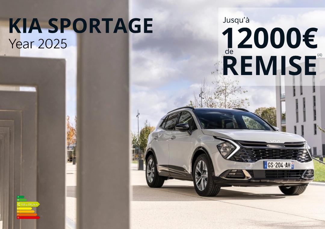 (4) Remise de 12 000 € valable du 01/02/2026 au 28/02/2026 pour l’achat de ce KIA SPORTAGE GTL PREM HEV 215 ch (Immatriculation : GZ-855-DQ, Date de première immatriculation : 16/09/2024). Prix de vente TTC remisé : 35 990,00 €. Le prix inclut les options et accessoires, notamment le Bac de coffre d'une valeur de 131,00 € TTC. Le prix s'entend hors frais de mise à la route, certificat d'immatriculation et éventuel malus écologique. Véhicule de démonstration avec 15 000 km au compteur, disponible immédiatement sur le lieu de stockage : Labège. Offre réservée aux particuliers, non cumulable avec d’autres promotions en cours, dans la limite de ce seul exemplaire disponible.