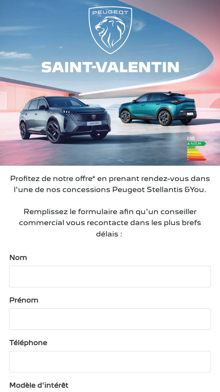 Sous réserve de votre consentement lorsque requis, vous pouvez recevoir des renseignements sur les offres, les nouvelles et les événements (newsletters, invitations et autres publications) de Stellantis &You France, de ses filiales ou de ses partenaires.
