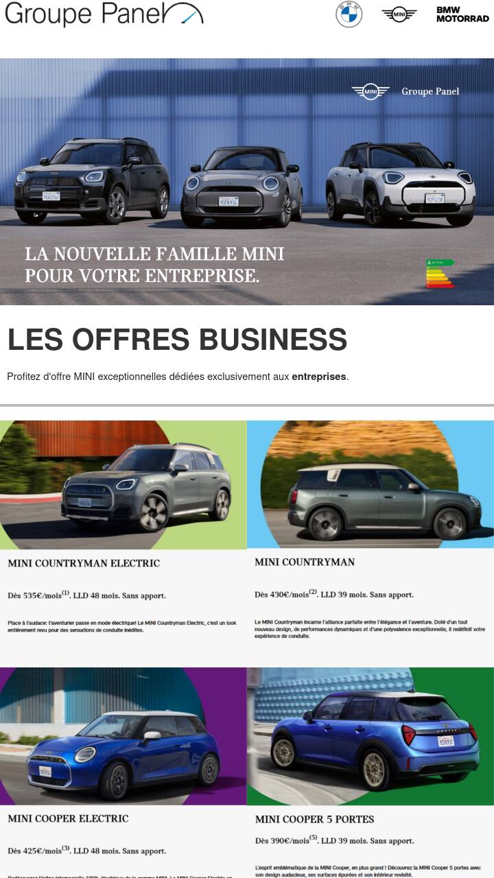 Profitez d'offre MINI exceptionnelles dédiées exclusivement aux entreprises.