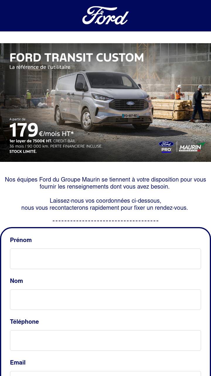 Nos équipes Ford du Groupe Maurin se tiennent à votre disposition pour vous fournir les renseignements dont vous avez besoin.