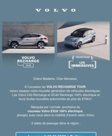 Avec le Volvo Recharge Tour, venez vivre l’expérience 100% électrique Volvo.