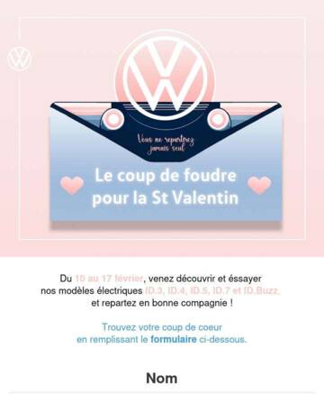 Du 10 au 17 février, venez découvrir et essayer nos modèles électriques ID.3, ID.4, ID.5, ID.7 et ID.Buzz, et repartez en bonne compagnie !