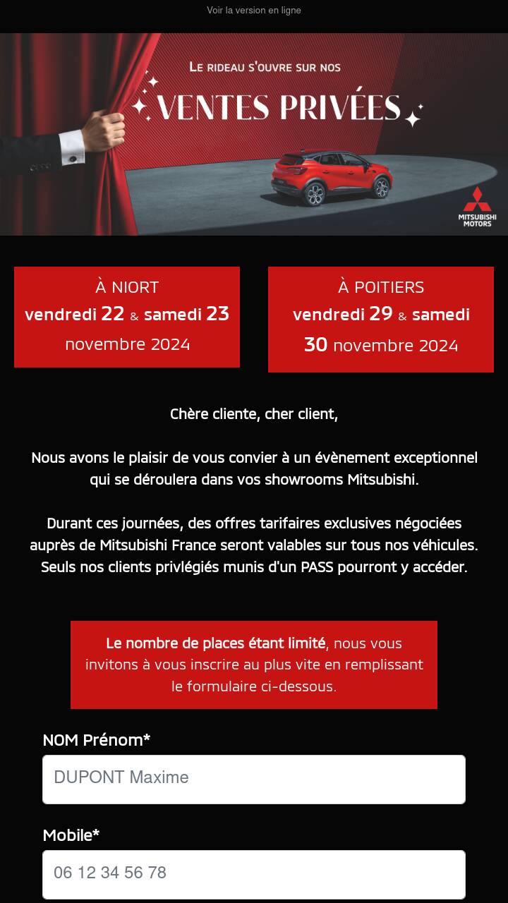 Nous avons le plaisir de vous convier à un évènement exceptionnel qui se déroulera dans vos showrooms Mitsubishi.