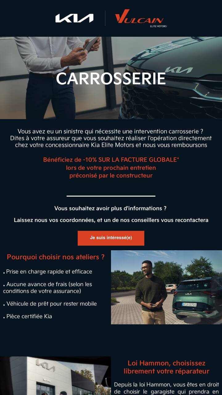 Vous avez eu un sinistre qui nécessite une intervention carrosserie ? Dites à votre assureur que vous souhaitez réaliser l'opération directement chez votre concessionnaire Kia Elite Motors et nous vous remboursons
