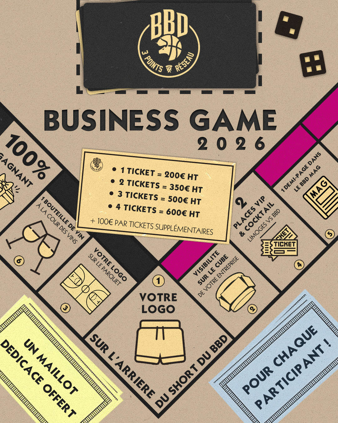 *En dessous de 50 tickets vendus, le jeu sera annulé et les participants seront remboursés.